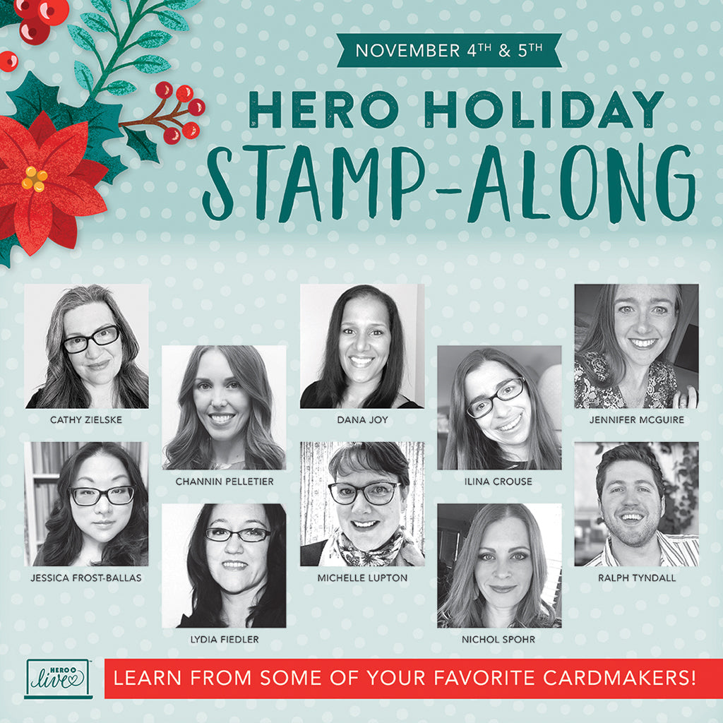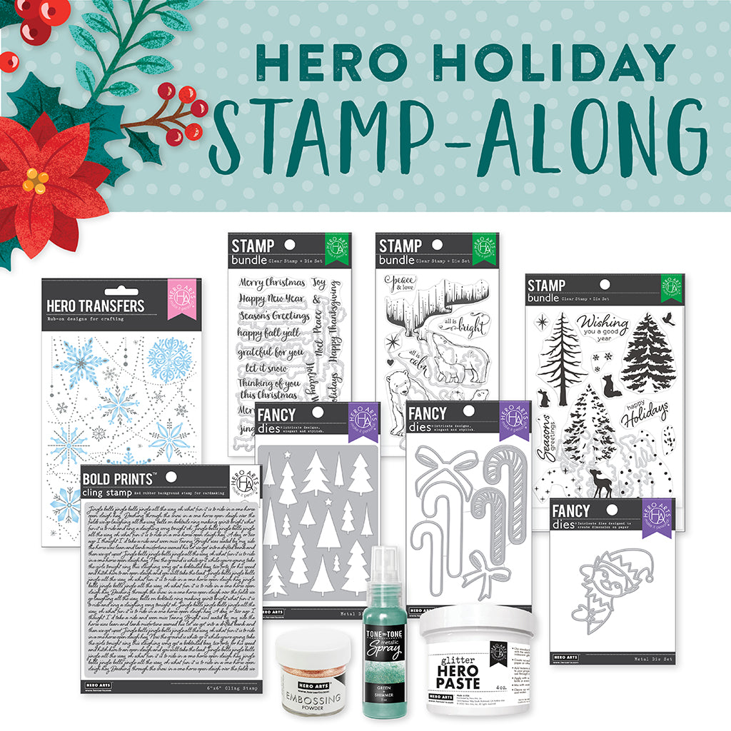 And now it's time to hop! Visit all of these amazing artists for inspiration and ideas for using the new holiday products. We'll be giving away two $50 gift cards, drawn from the comments left along the hop. Comment on all the blogs for more chances to win! You have until Thursday, August 31st at 11:59pm to enter. The winners will be announced on the Hero Arts blog.