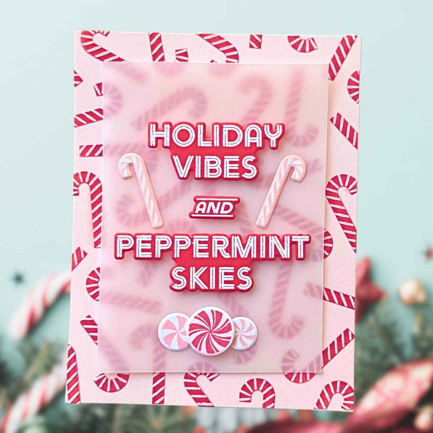 From “Holiday Vibes and Peppermint Skies” to “Sweet but Twisted,” these bold and cheeky phrases pair perfectly with the included candy-themed icons. The matching dies make it easy to add dimension to your cards, tags, and treat toppers—creating projects that are merry, minty, and full of fun.