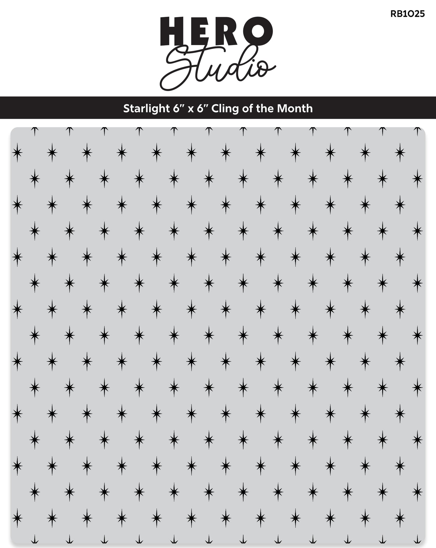 The Starlight Cling Stamp of the Month - October 2025, a 6"x6" rubber cling, with delicate, all-over background stamp featuring a constellation of tiny twinkling stars. Perfect for adding a soft, celestial shimmer to holiday cards, winter projects, or any design that needs a touch of magic, this versatile pattern pairs beautifully with bold focal images and festive sentiments.