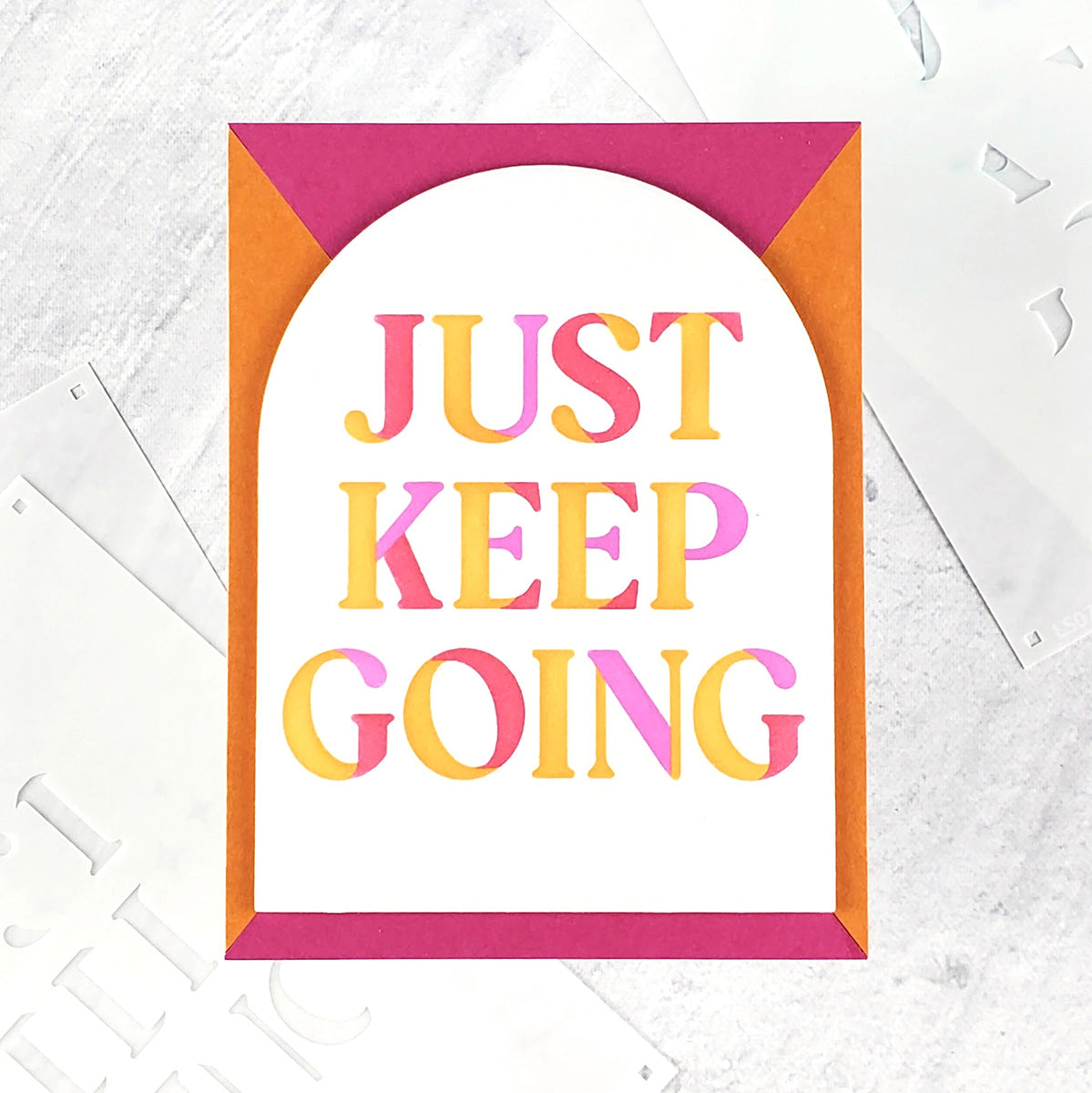 The Just Keep Going Layering Stencils of the Month - July 2025 is a 4-piece stencil set features bold, modern typography that builds layer by layer to create a vibrant, uplifting message—JUST KEEP GOING. Designed for easy alignment and perfect layering, each stencil helps you add dimension, shadow, and color variation for a professional finish.