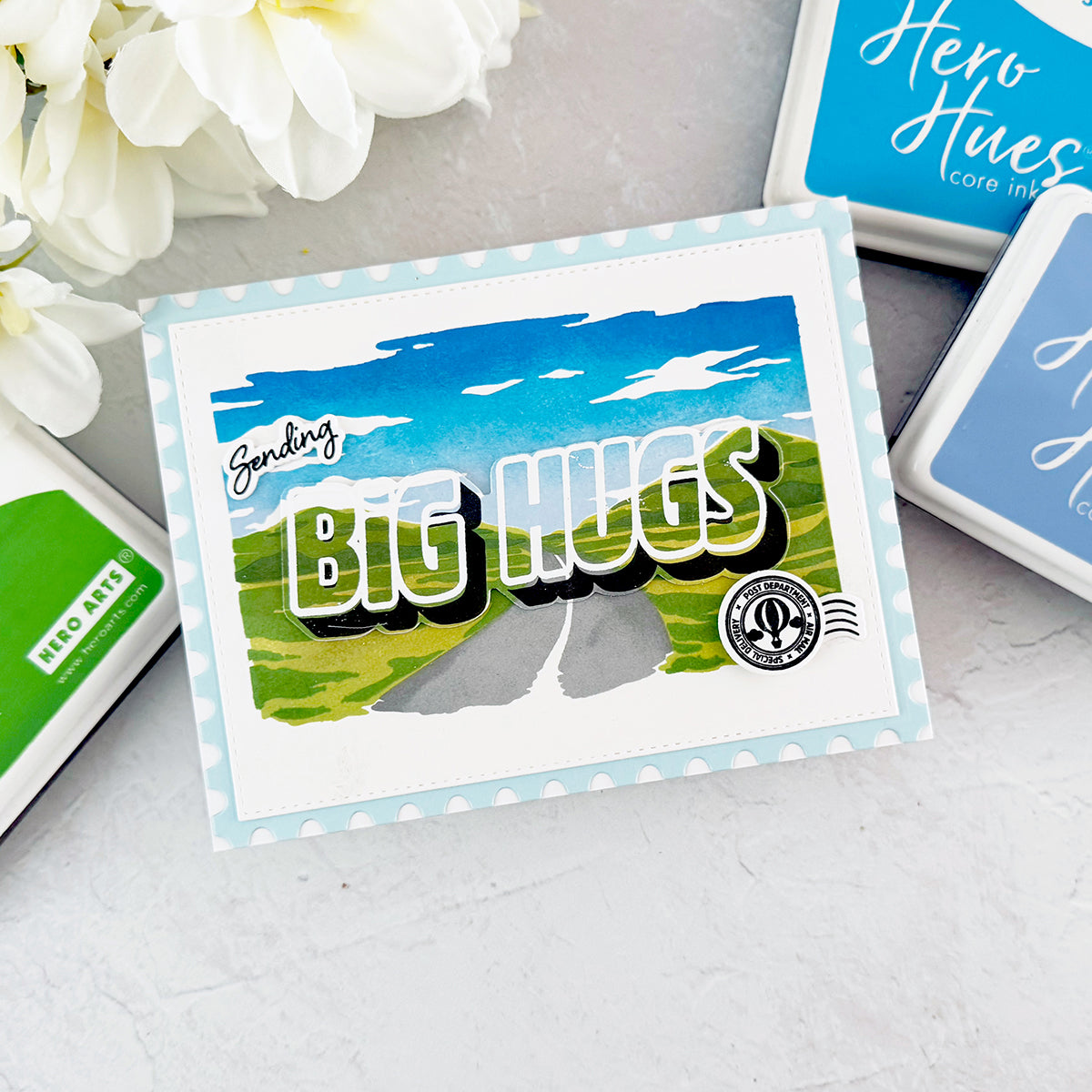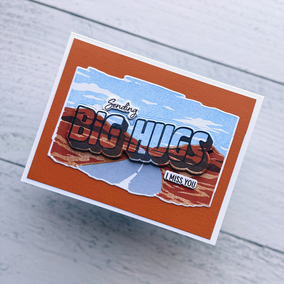 The Sending Big Hugs Stamp & Cut Set of the Month - July 2025 sends heartfelt messages filled wil bold typographic charm. This set includes a mix of typographic clear stamp sentiments and coordinating dies, perfect for creating standout cards with a friendly, postal vibe. T