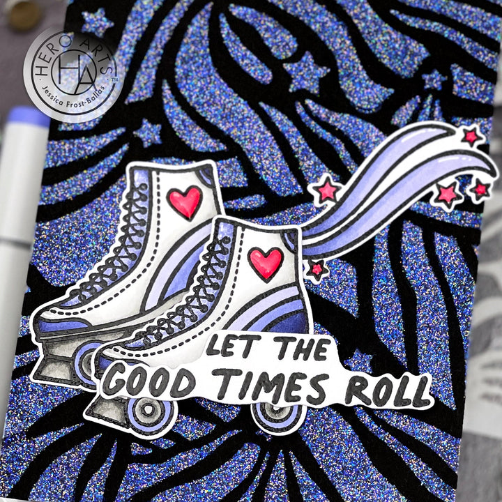 This playful stamp and die set includes vintage-style skates, stars, swooshes, and dynamic phrases like “Let the good times roll” and “You’re dynamite.” Perfect for birthdays, upbeat greetings, and spreading joy with every card!