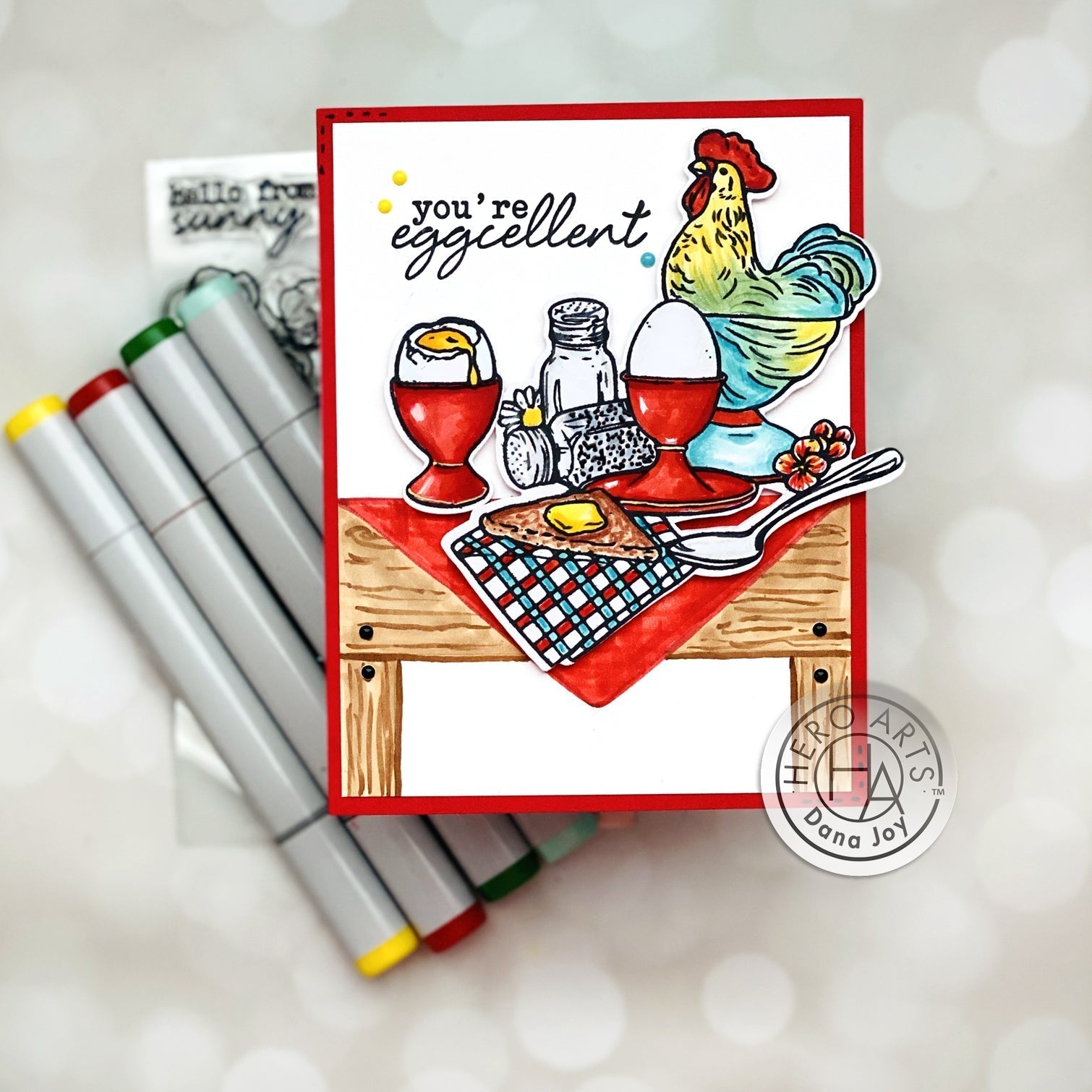 Bring a farm-fresh charm to your paper crafting with the Eggcellent Clear Stamp Set. Featuring whimsical hand-drawn breakfast imagery—from eggs and toast to a proud hen and kitchen table scene—this set is perfect for cards that feel warm, playful, and delightfully punny.