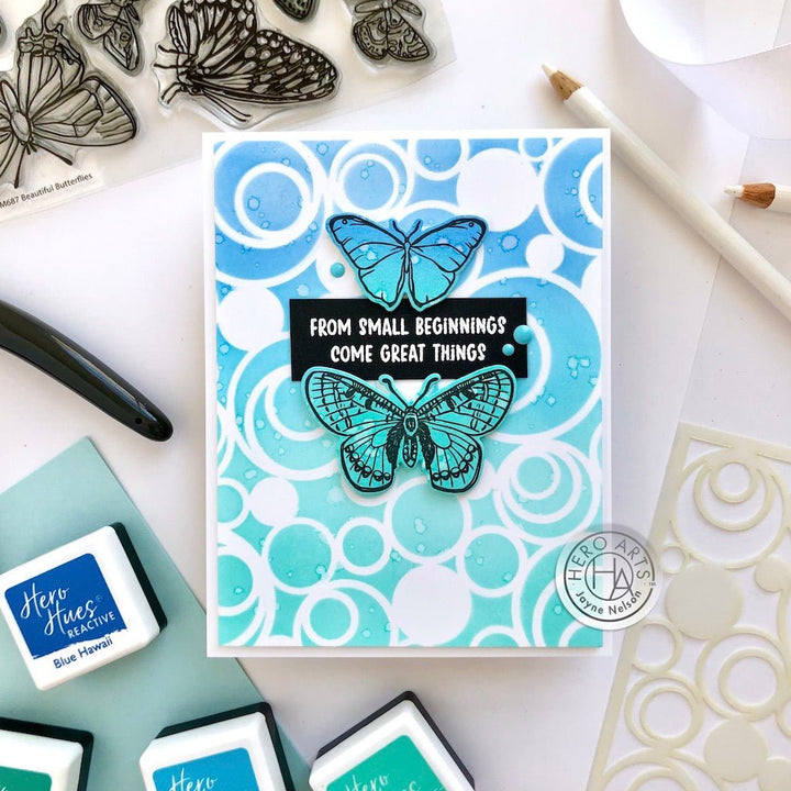 Measuring 6” x 6”, Hero Arts laser-cut stencils are made of thick frosted mylar. Use a paintbrush, ink pad, dauber, or spray to transfer the design to your favorite media.