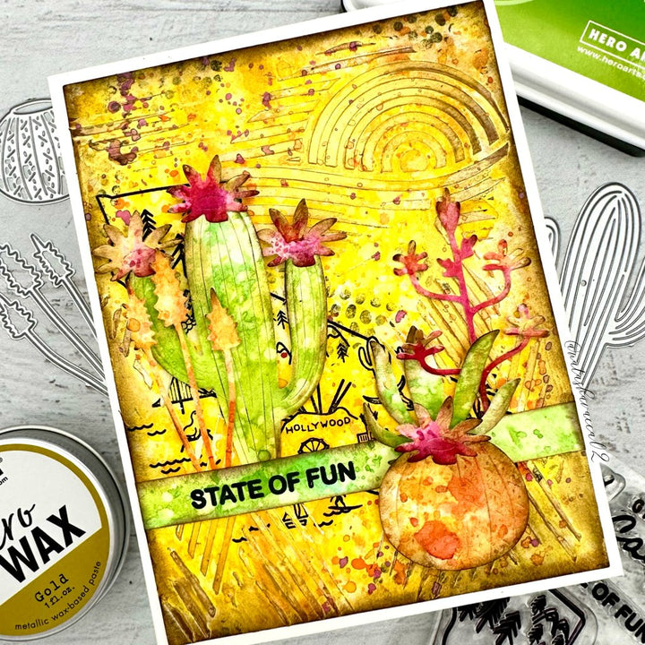 Measuring 6” x 6”, Hero Arts laser-cut stencils are made of thick frosted mylar. Use a paintbrush, ink pad, dauber, or spray to transfer the design to your favorite media.