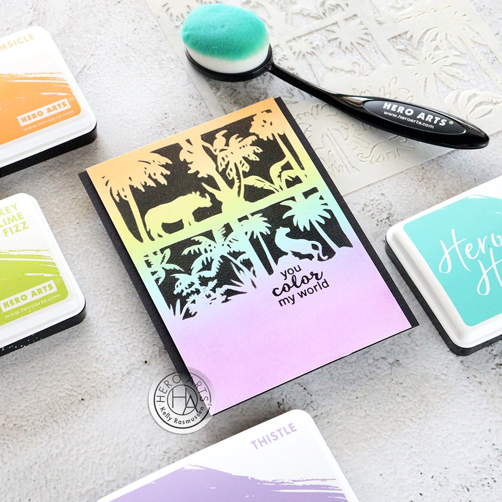 Featuring a bold design with rhinos, elephants, monkeys, and exotic trees, this stencil is perfect for creating adventurous card backgrounds, journal spreads, or mixed media art. Use with inks, pastes, or sprays to bring this lively jungle landscape to life.