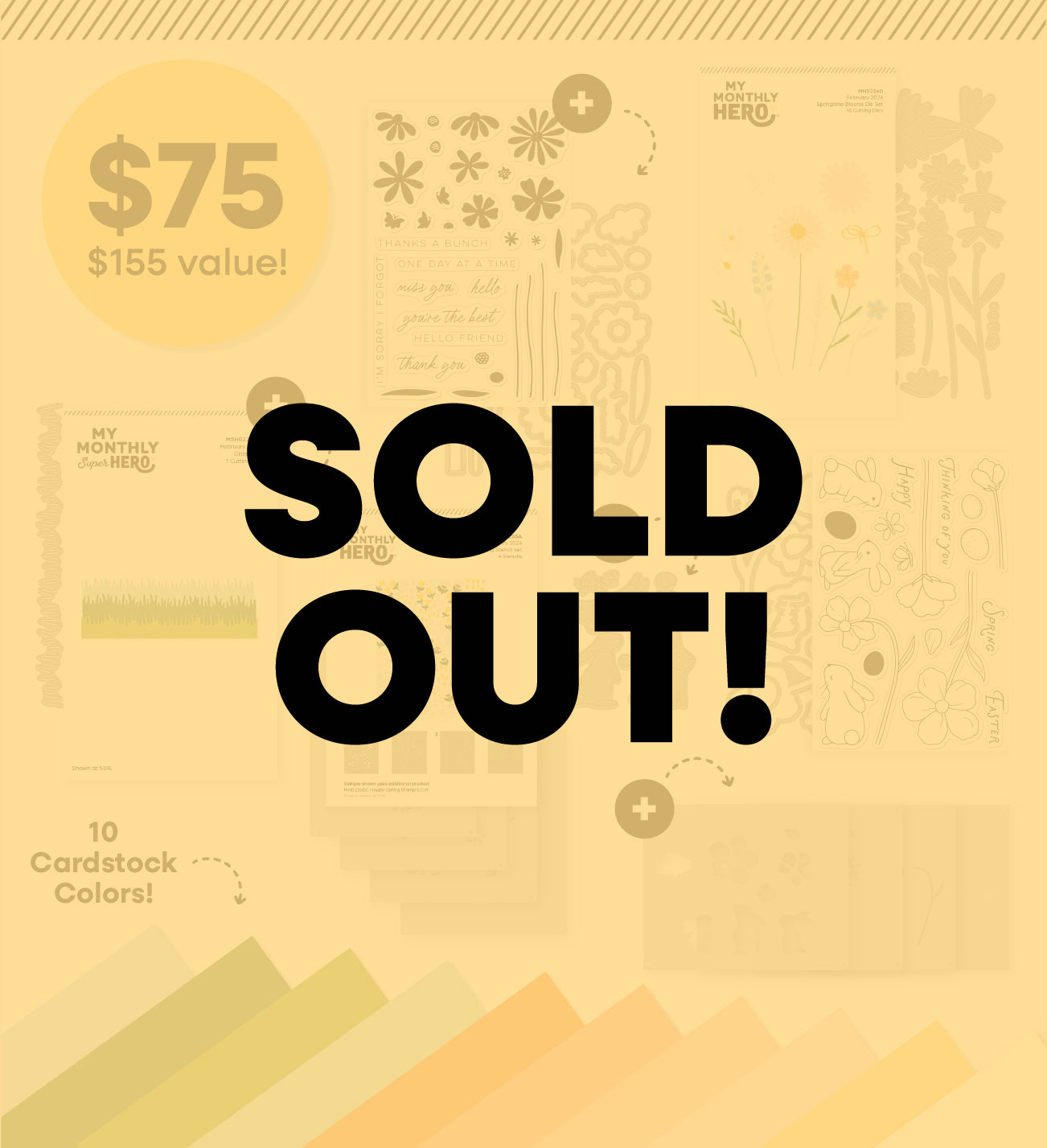 February’s My Monthly Super Hero kit, In Full Bloom, includes everything in the My Monthly Hero kit — plus more! Featuring sweet bunny imagery, layered florals, and cheerful seasonal details, this expanded collection makes it easy to create detailed cards and projects for Easter, spring greetings, and heartfelt hellos. Thoughtfully curated to inspire, In Full Bloom brings even more creative flexibility to your spring cardmaking.