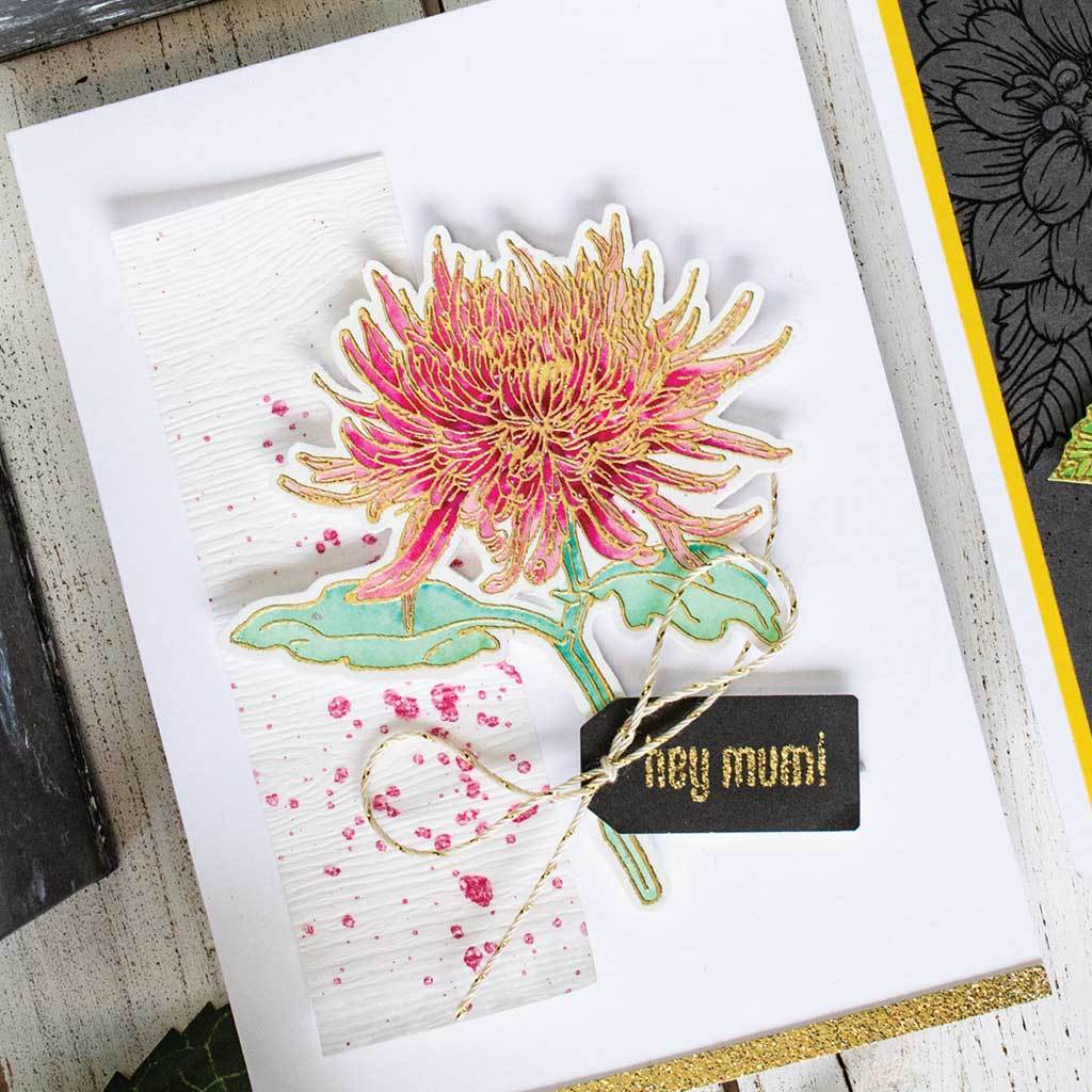 Hero Florals Mum Stamp & Cut Set A set of stylish clear stamps paired with coordinating Frame Dies for use with creative techniques and to add dimension to your cardmaking.