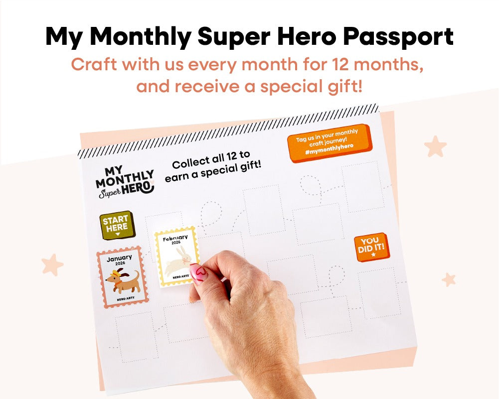 View all*The My Monthly Super Hero discount provides 15% off eligible purchases and cannot be combined with other discounts or promotions unless otherwise stated. A free shipping coupon is issued monthly to active My Monthly Super Hero subscribers and is valid for one-time use within the specified time frame. One collectible sticker is included each month for active subscribers to add to their My Monthly Super Hero passport. The 12-month reward gift is earned after 12 consecutive months of active subscription. Subscription pauses, cancellations, or missed months will reset the consecutive count. Rewards and perks have no cash value and are non-transferable. Hero Arts reserves the right to modify or discontinue the My Monthly Super Hero program, benefits, or rewards at any time. Additional exclusions or restrictions may apply.