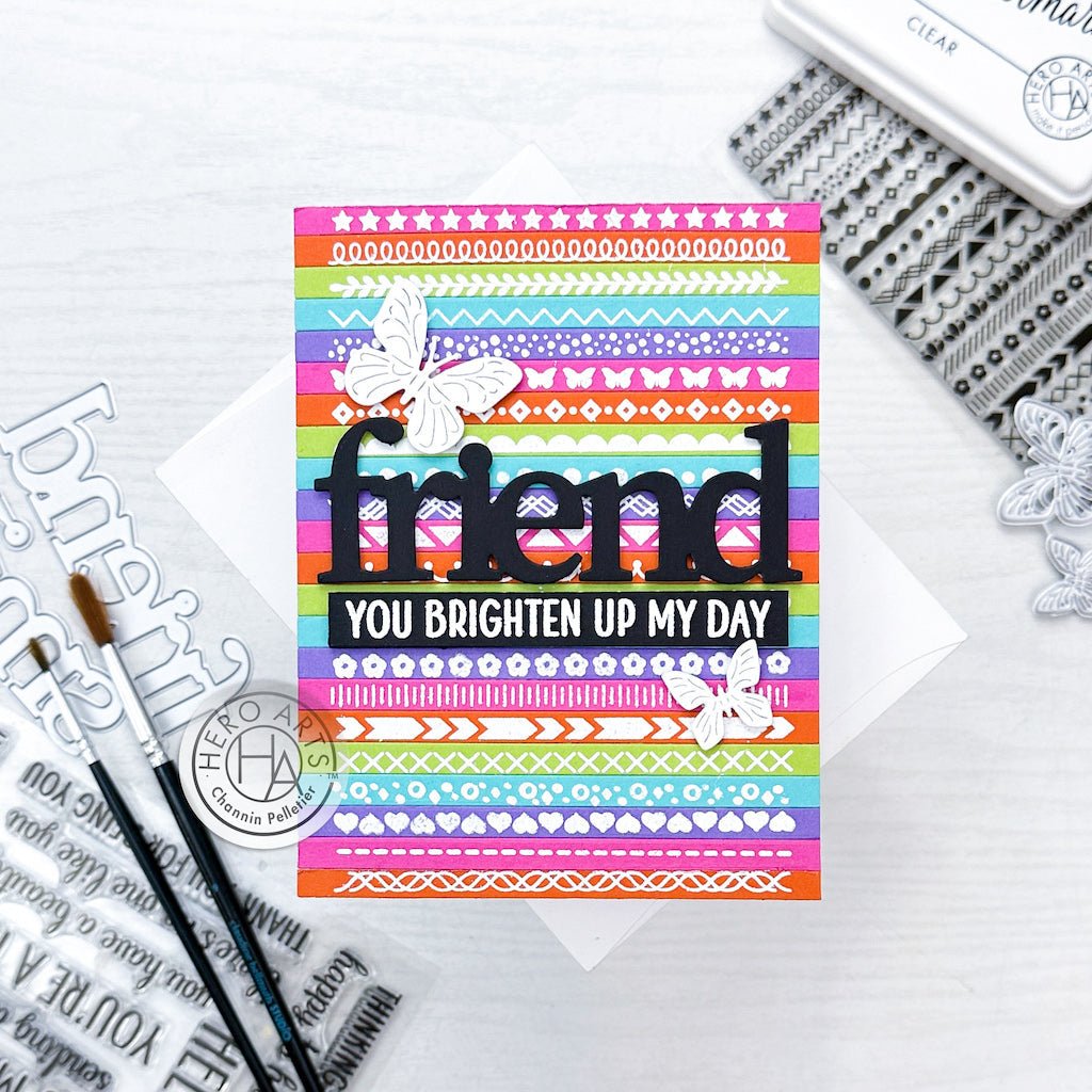 Hero Arts 4" x 6" clear stamp sets offer the best quality in the market. They are made in the USA from genuine photopolymer, which is non-toxic, biodegradable, and beautifully transfers ink to paper for a true impression every time. Peel the stamp from its backing and stick to an acrylic block for easy positioning. Mix and match the designs. Cleans up easily with water or stamp cleaner.