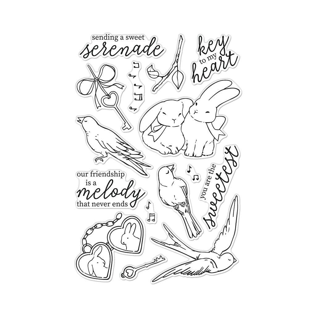 Celebrate affection, friendship, and sweet serenades with the Love Bird & Friends Clear Stamp Set. This charming collection features a delightful mix of musical birds, cuddly bunnies, heart-shaped keys, and thoughtful sentiments—perfect for creating heartfelt cards that sing with love.