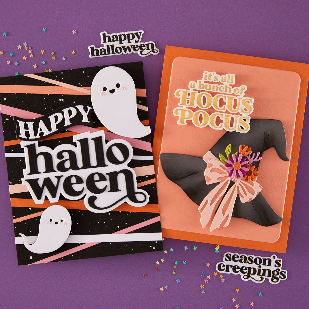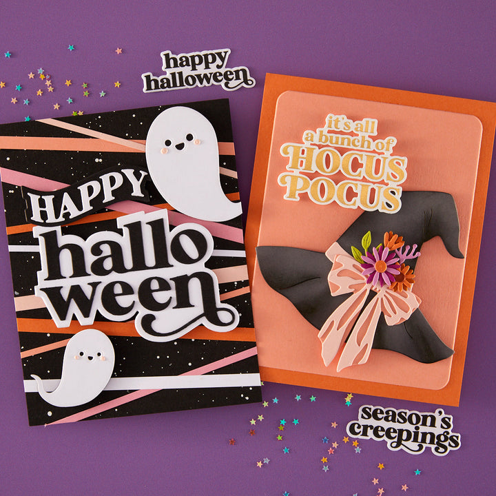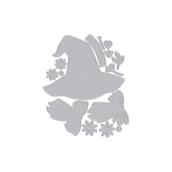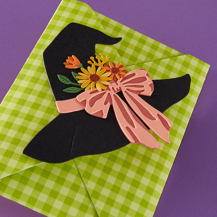 Add a touch of spellbinding magic to your crafting with The Witch’s Hat Die Set. This charming set includes 15 etched dies that allow you to build a whimsical witch’s hat adorned with delightful embellishments like florals, leaves, and an oversized bow. Whether you’re crafting for Halloween or creating a stylish autumn project, this set offers playful elegance with every cut.