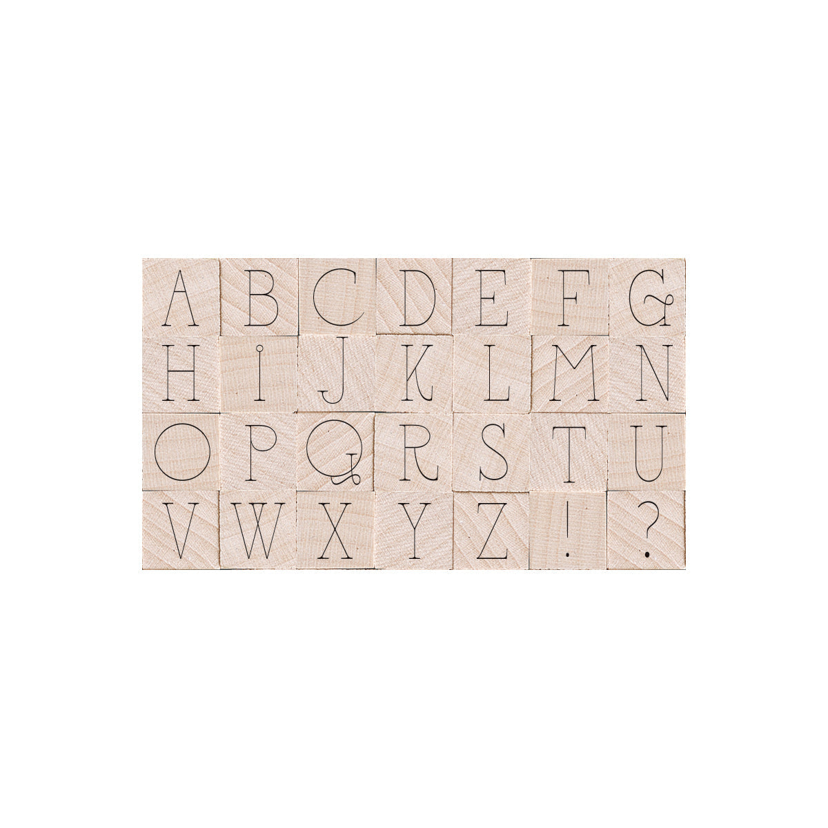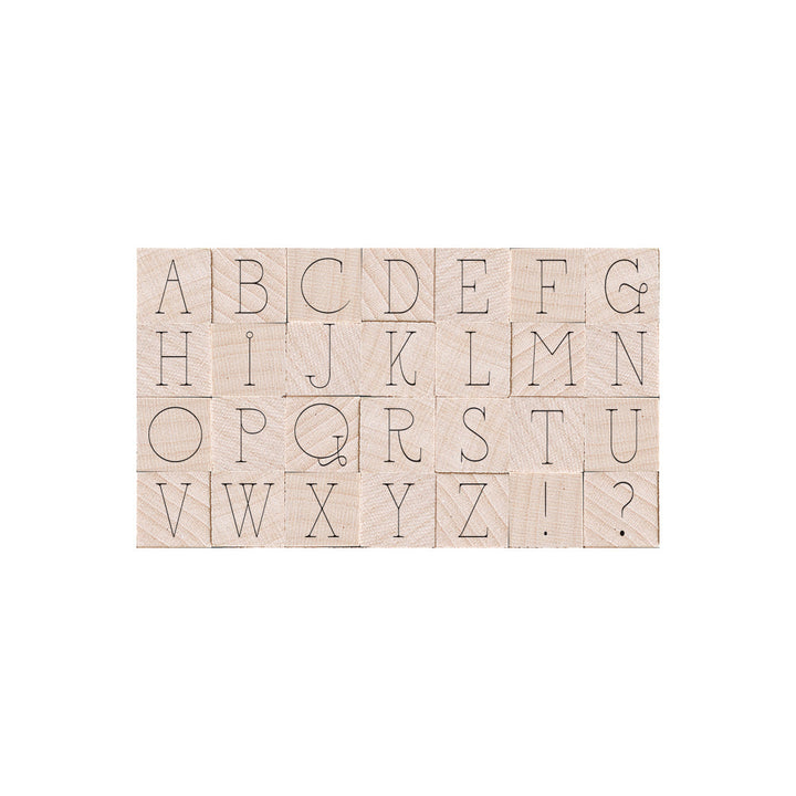 Bring timeless charm and delicate detail to your projects with the Whimsical Woodblock Stamp Set. Featuring the complete uppercase alphabet along with a question mark, exclamation point, and an elegant ampersand, each character is rendered in a fine-line serif style with subtle flourishes that feel both classic and playful.