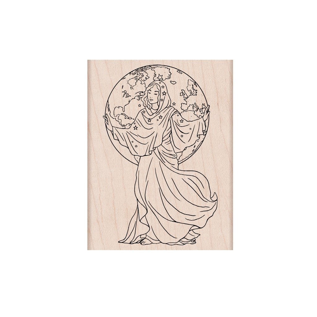 She carries the weight of the world with love and peace. This goddess is a dream to color and will be a stunning addition to your next card, journal, or mixed media piece.