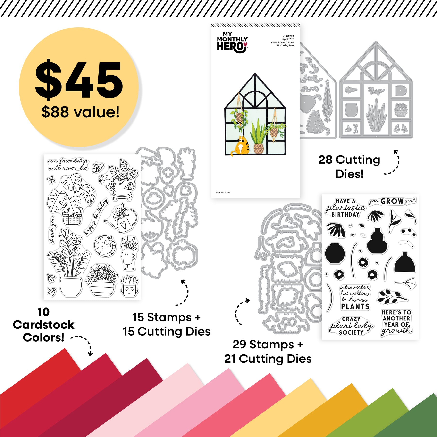 Create fresh, modern cards filled with leafy details and cheerful messages for birthdays, friendship, and everyday encouragement. Whether you’re building a lush greenhouse scene or arranging a collection of happy houseplants, this kit makes it easy to craft projects that feel bright, welcoming, and full of life.