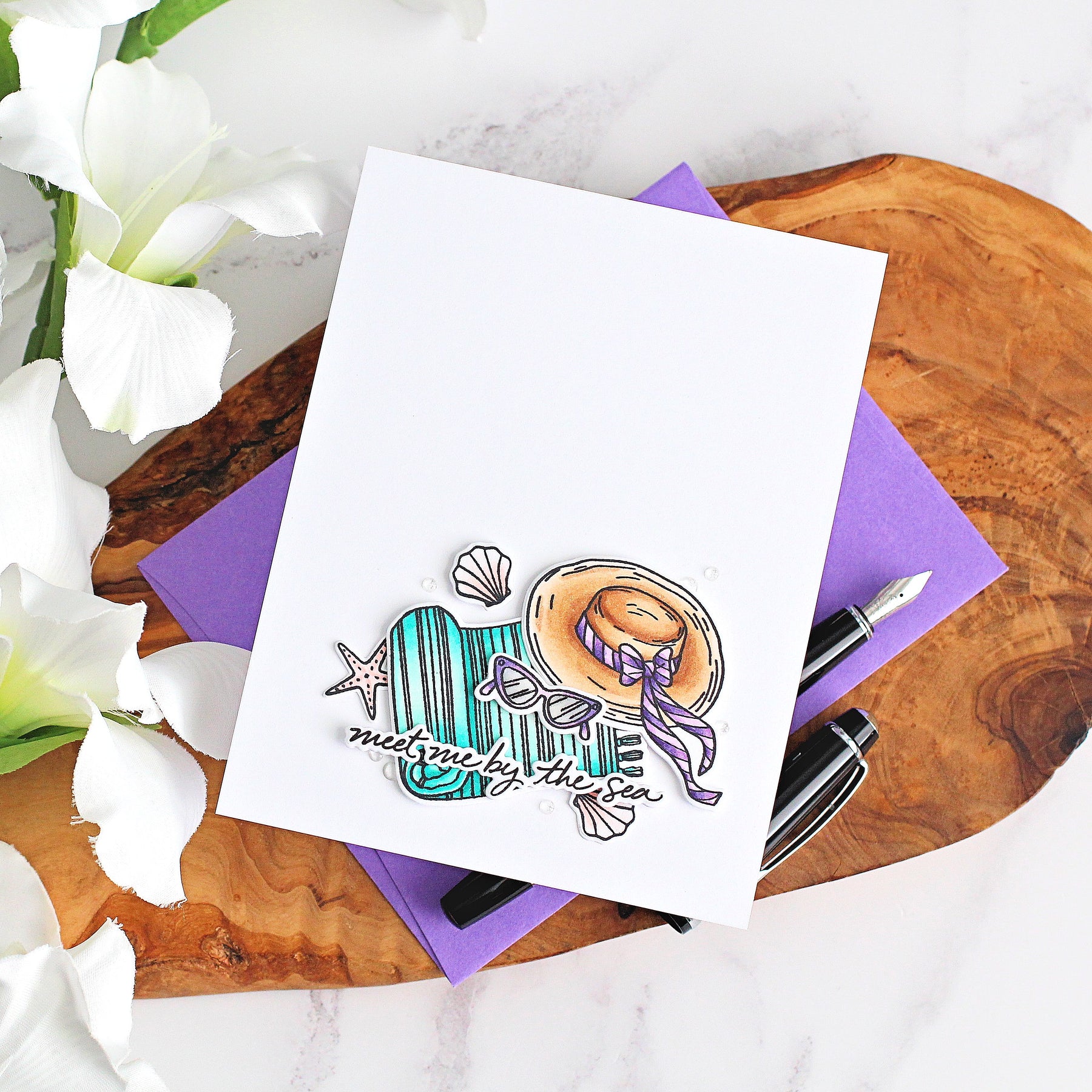 Craft snapshots of summer time with these beach stamps and dies, then accent your designs with sweet messages like “sun, sand, surf,” “if lost, return to the sea,” and “saltwater + sunsets.”