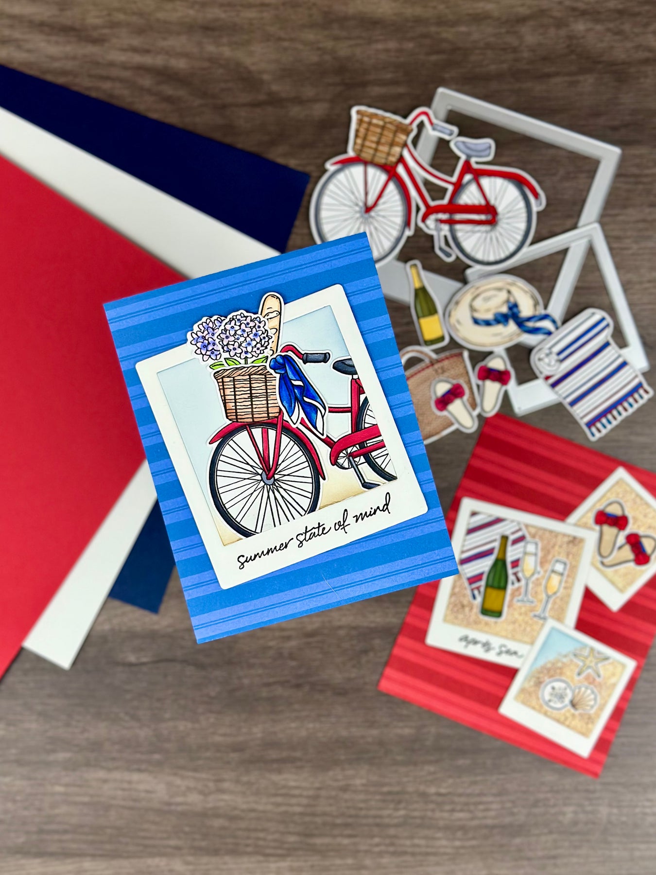 Step into sunshine and leisure with the Summer State of Mind Card Kit of the Month - June 2025. This playful and charming kit captures the joy of seaside escapes, bike rides to the farmer's market, and laid-back summer vibes. With detailed stamps, coordinating dies, and a vibrant palette of premium cardstock, you'll have everything you need to bring your beachy daydreams to life on paper.